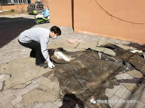4月12日上午,当天风力达到6、7级,是开春以来南风最大的一天。正在小区保洁的金占武走到电厂小区7#楼二单元时,发现地上有几小块屋面防水材料的碎片,为了确定楼顶防水层是否被风刮了起来,已经60岁的金占武顺着楼道六层的检修口爬到了7#楼的楼顶,看到整个二单元防水层的残渣散落在楼顶上,随时有被大风刮落的危险,给小区居民带来很大的安全隐患,金占武第一时间对楼顶情况进行录像,并汇报给南岭物业负责人邢铁军。